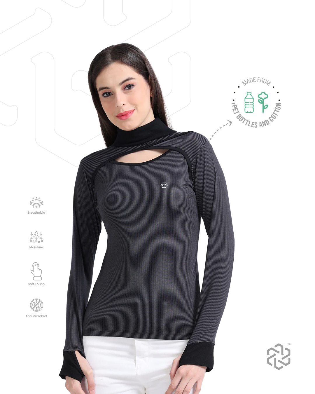 Women's rPET with Recycled Cotton Criss Cross Turtle Neck with Full Sleeve T Shirt